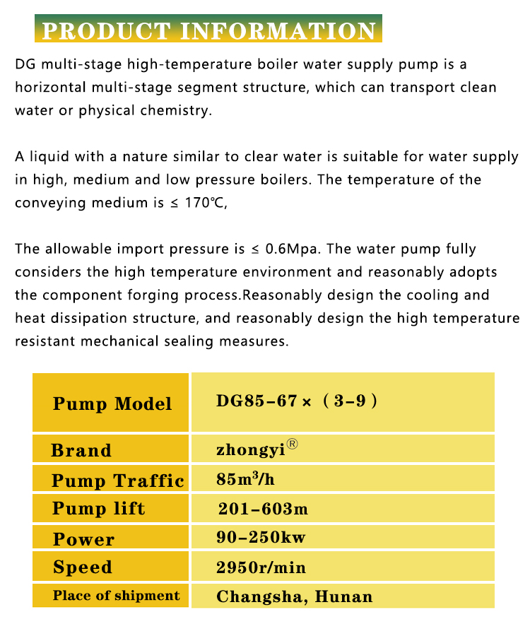 Product Introduction:DG85-67 × (2-9) Boiler feed pump